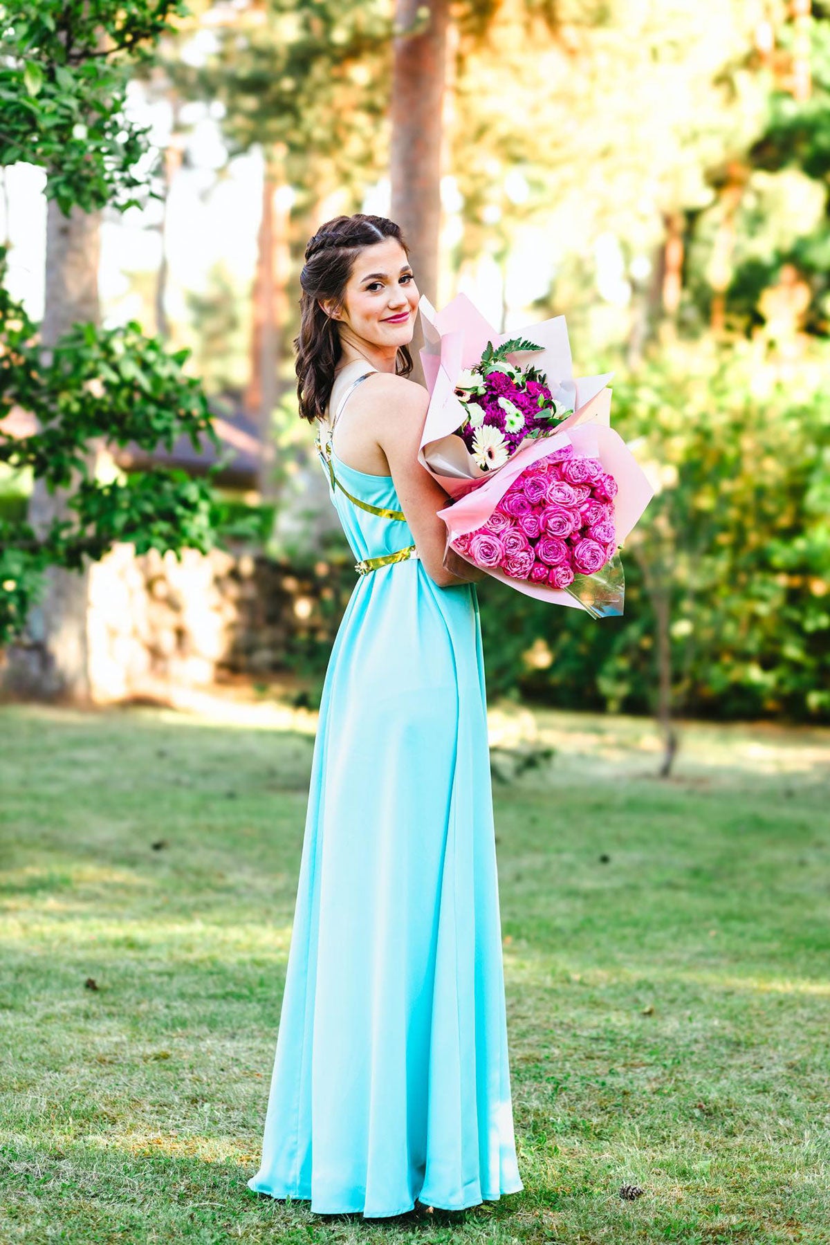 Vanalinna Hariduskolleegiumi lõpetaja Helena valis oma lõpukleidiks kuldsete nahkrihmadega Annabeli, sest see väga kaunis kleit pakub palju kandmisvõimalusi ka teistel suvesündmustel.