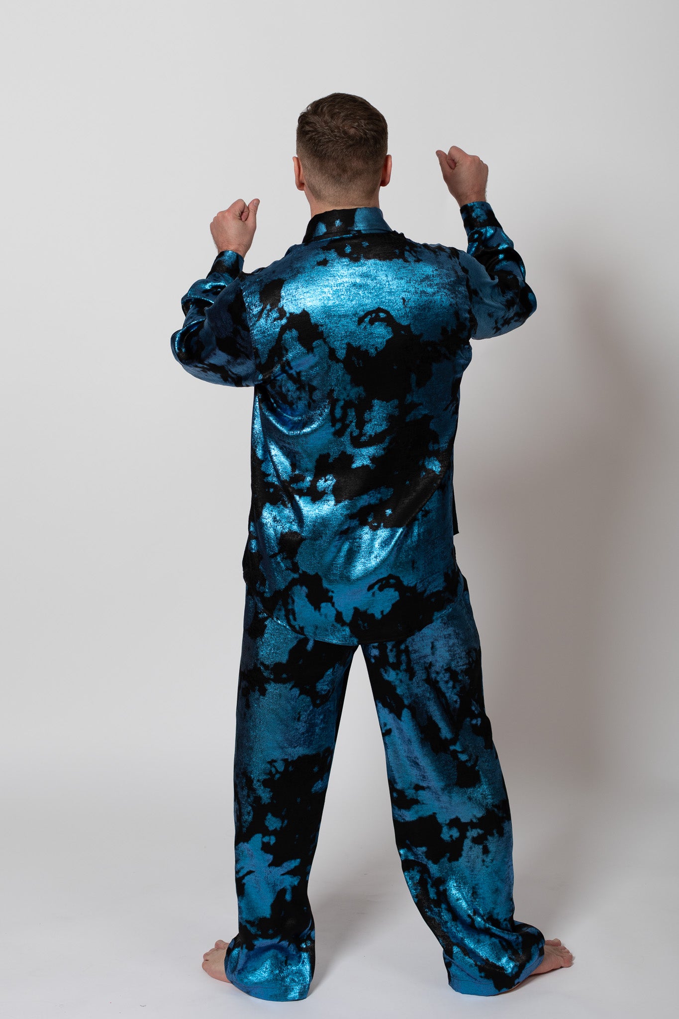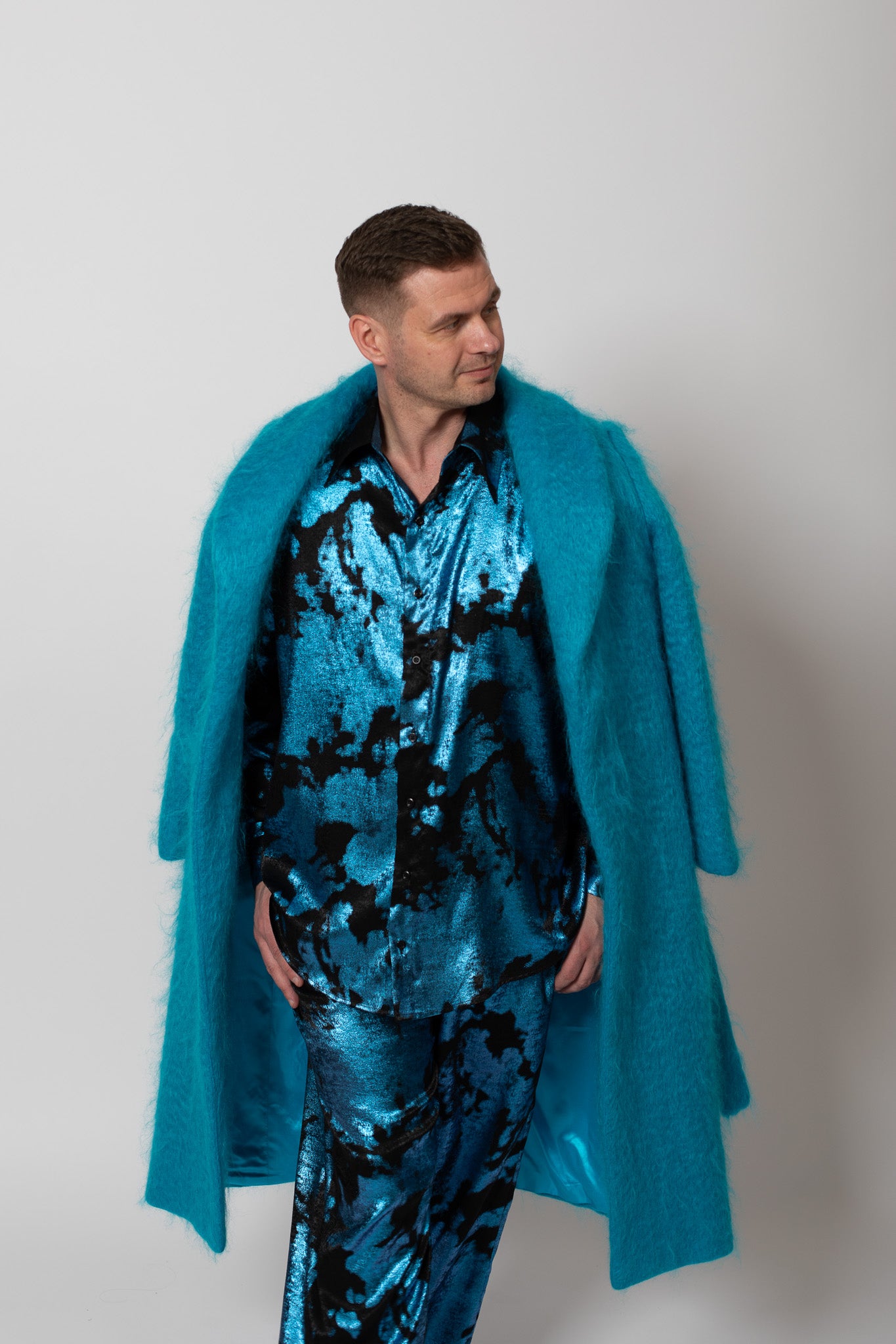 Disco Dolphin on neoonsinise ja musta sametise feel'iga komplekt, kus pluus ja püksid liiguvad sama kergelt kui kandja ise. Materjal ei kortsu ja istub hästi nii tänaval kui peol. Vaba, mugav ja veidi ulakas – lihtsalt selga ja minek.