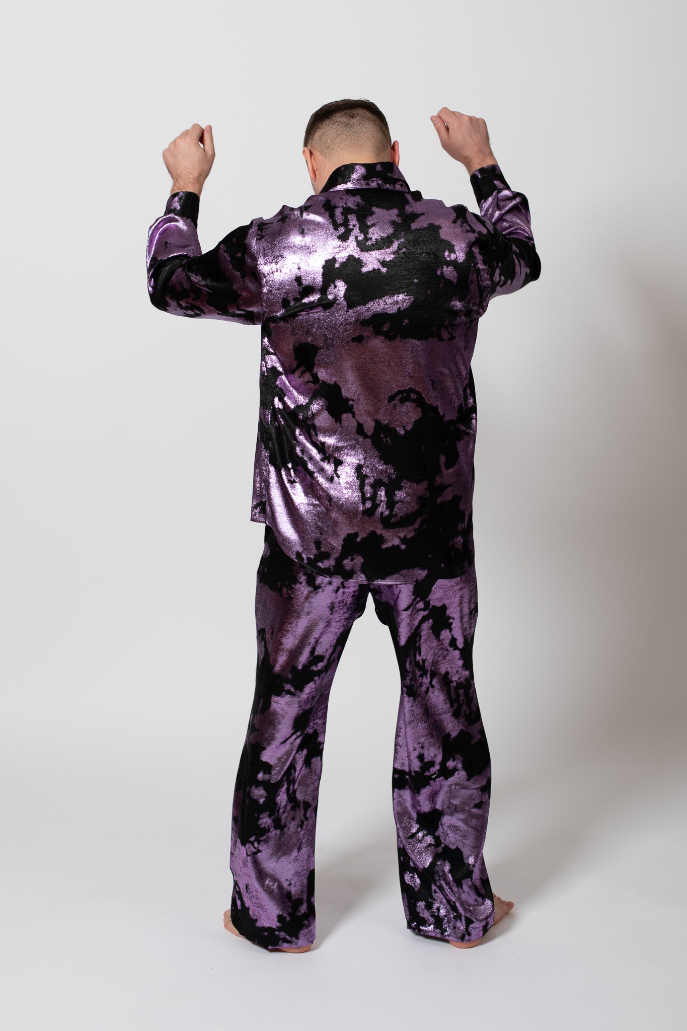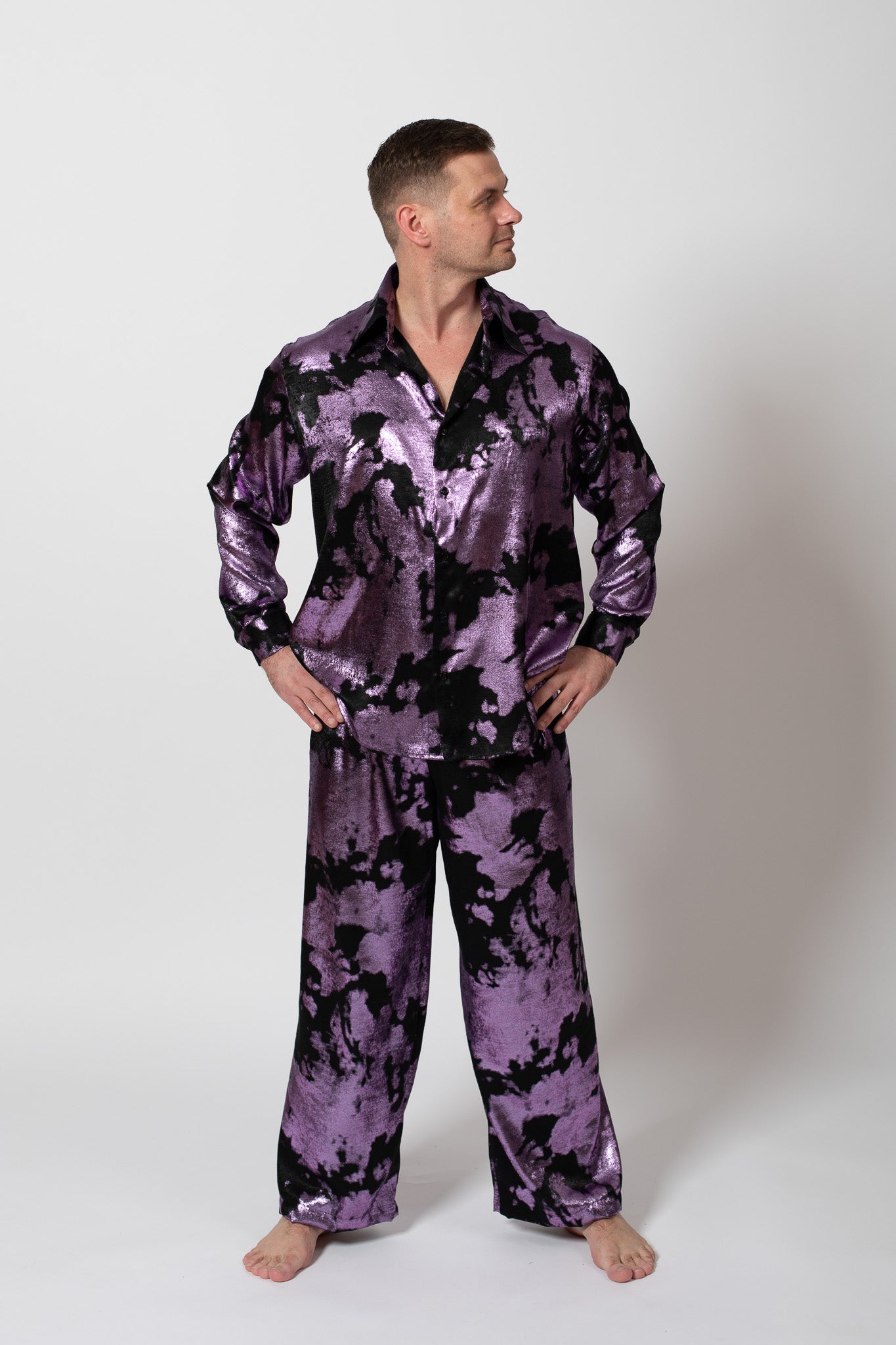 Sugar Plum Party on lillakas sametine komplekt, mis ei küsi luba, vaid teeb tuju heaks juba enne, kui uksest välja jõuad. Pluus ja püksid hoiavad joont, ei kortsu ja tunnevad end seljas pehmelt ning vabalt. Natuke komm, natuke kaos – ideaalne siis, kui tahad olla nähtav, aga mitte pingutada.