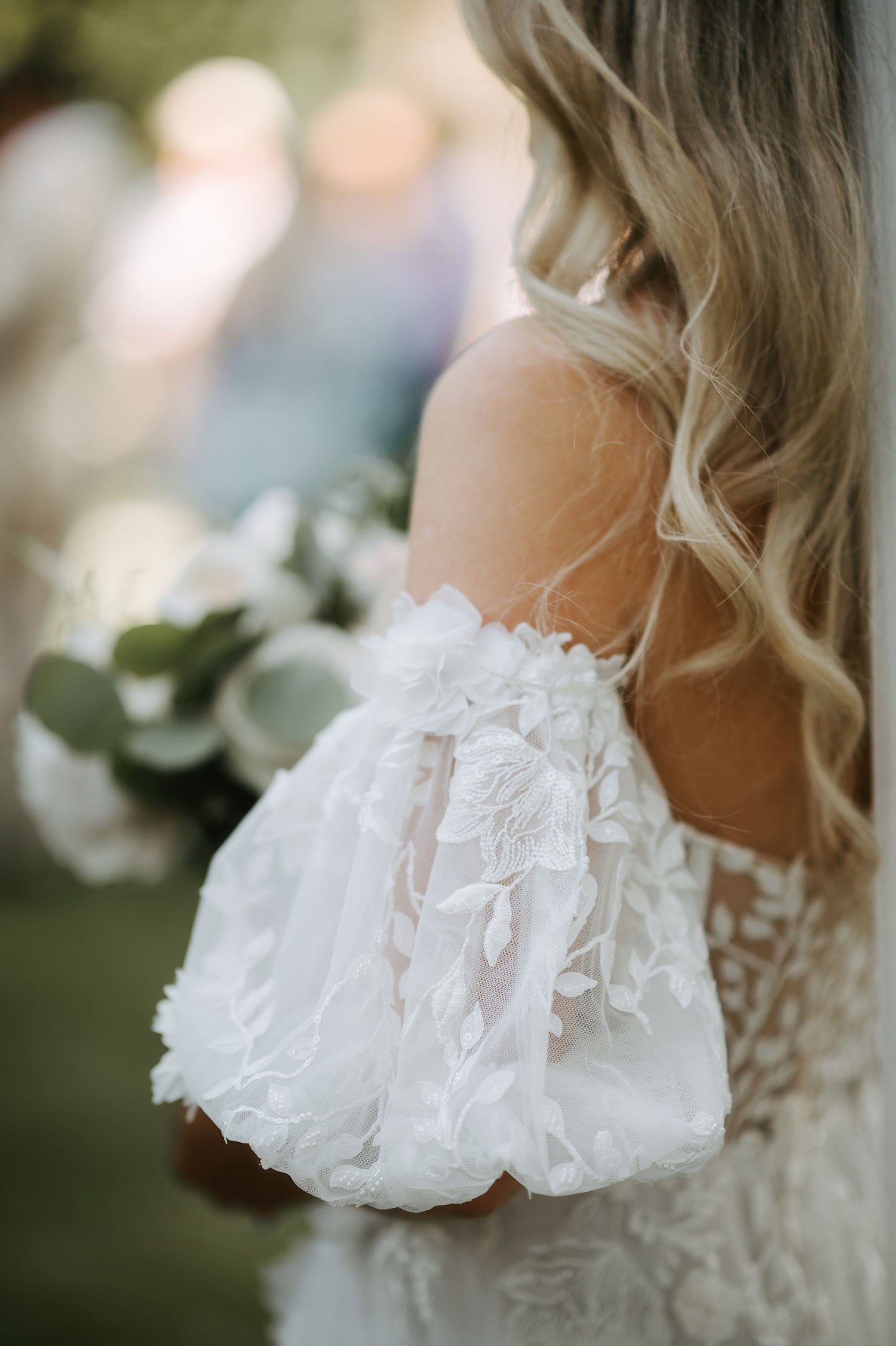 Pulmaloo juures mängivad rolli ka kõige pisemad nüansid – just nagu need õhulised, pitskaunistustega puhvis varrukad, mis lisasid kogu ansamblile unistavat pehmust ja ajatut romantikat. Eriliseks tegi need see, et varrukad ei olnud kleidi külge kinnitatud, vaid istusid õrnalt ümber käsivarte. Nii sai päeva pidulikkuse vahetada õhtu kerguse vastu – kui tantsuks läks, libisesid varrukad elegantselt kätelt ja Eneli sai end vabalt keerutada, kleidi tüll kihisemas ja naer lendu tõusmas.