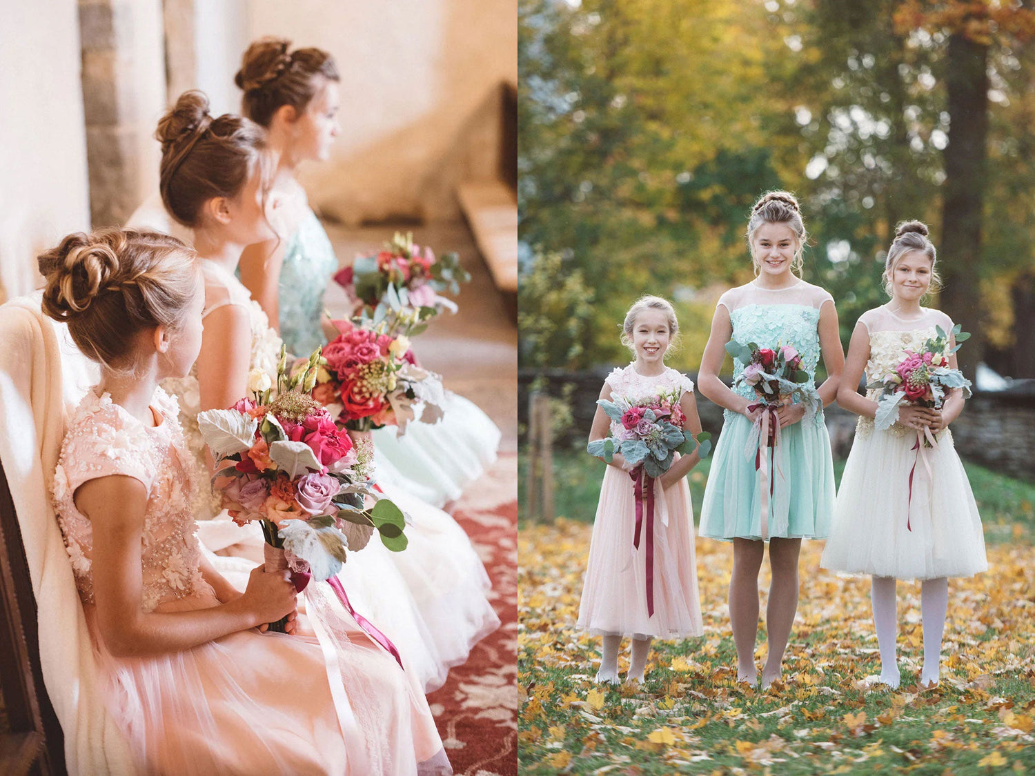 Kogu ansambli muutsid veel täiuslikumaks roosasse riietatud pruutneitsid, kelle siidšifoonist drapeeritud kleidid harmoneerusid imeliselt nii pruudiga kui omavahel.
