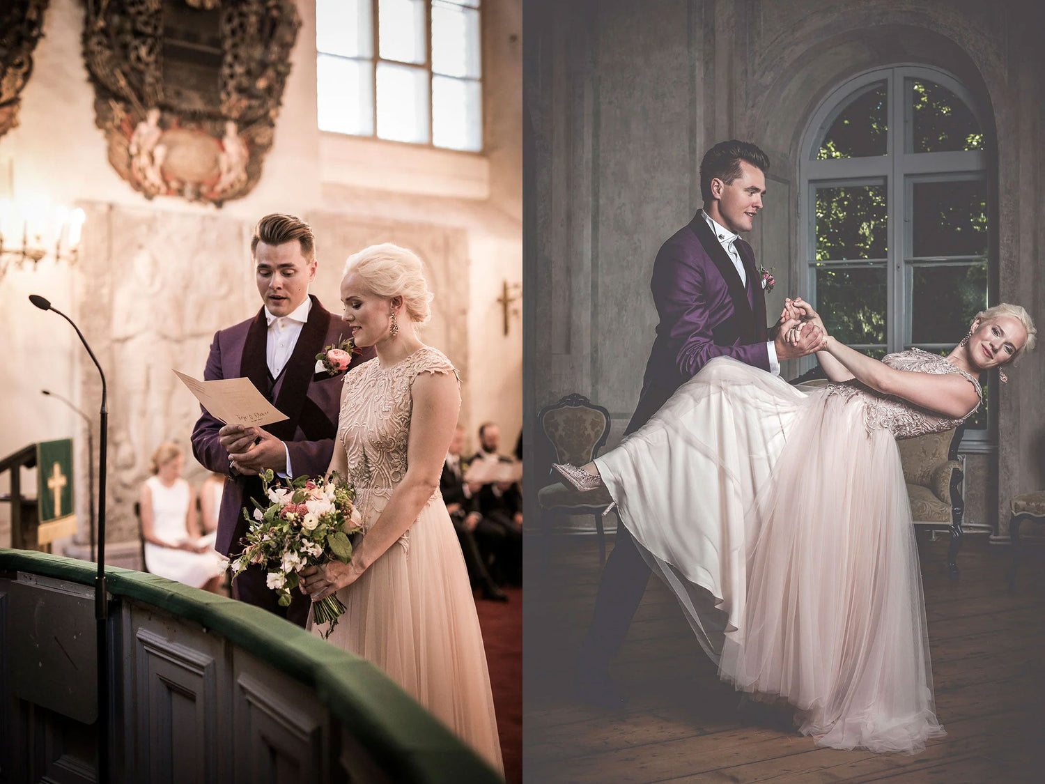 Kaunis Karin meie klassikalises pulmakleidis, mille ülaosas sädeleb pits ning seelikus voogab siid ning Peeter, seljas valge särk, mis on ehitud pulmakleidi pitsidetailidega - see on paradiisiranna täiusliku abielusadama definitsioon.