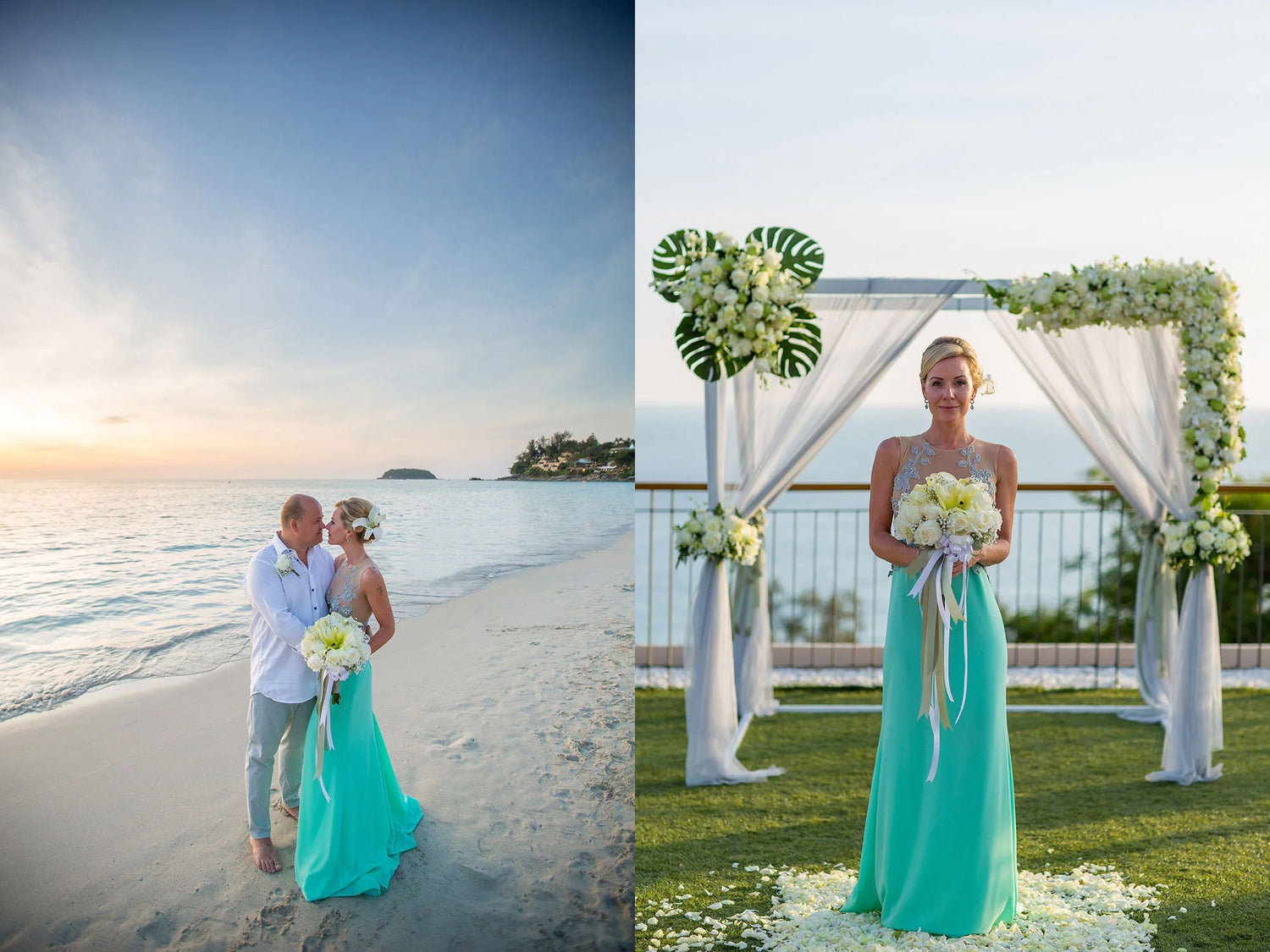 Mis oleks romantilisem pulmast inimtühjas paradiisirannas? Vaid selline pulm, kus pruut seisab oma armastatu käte vahel oma unelmate kleidis ning täpselt sellise Liis meie kevadsuvisest kollektsioonist endale leidis. Hõbedaste pärlitega ehitud pitsist ülaosa ning mündirohelise seelikuga kleit oli Tai romantiliste rannikute pulmamiljöösse kui loodud.