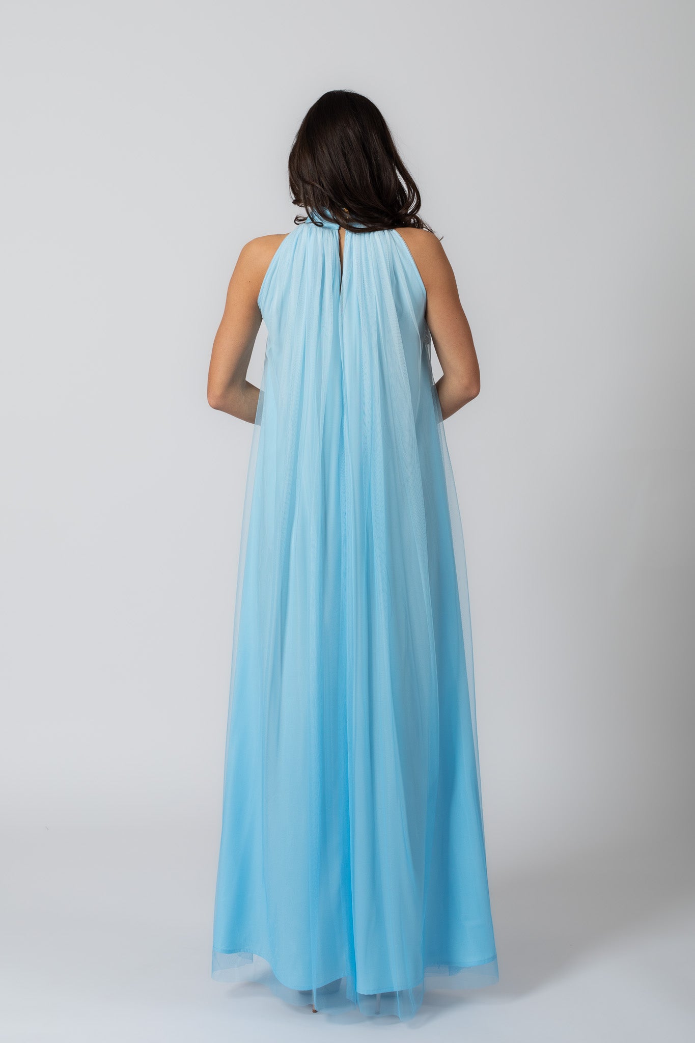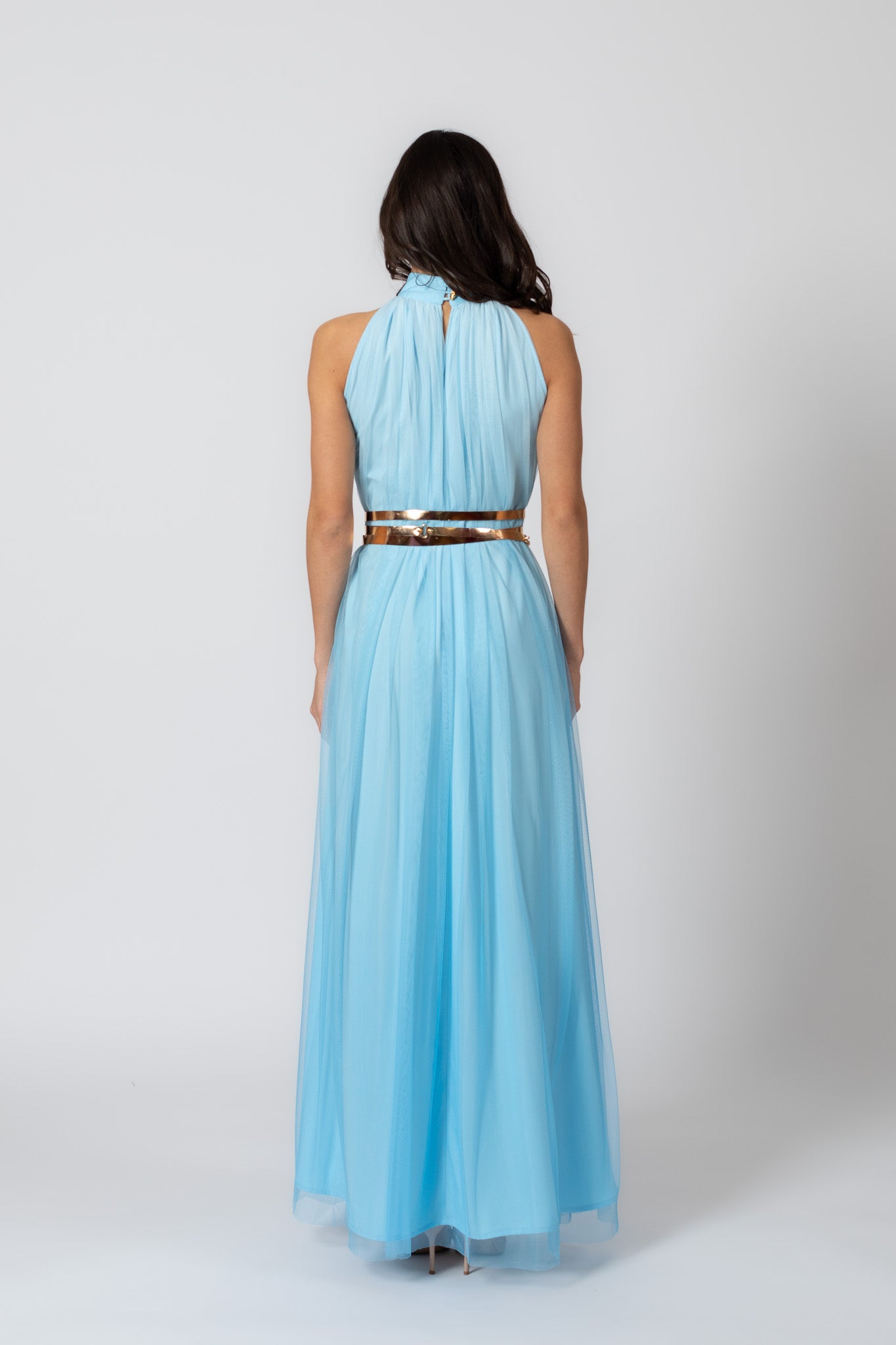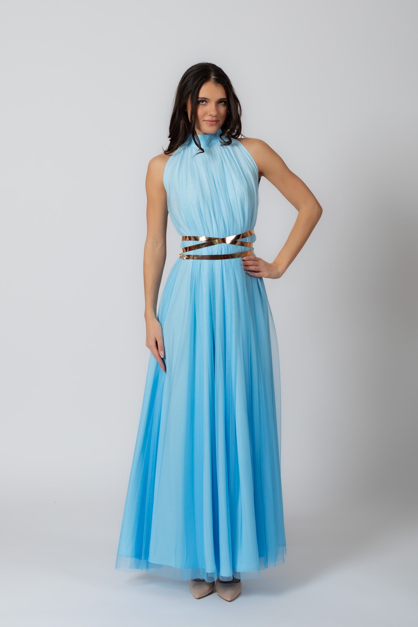 Taevasinine kreeka jumalannalik suvekleit, mis on tehtud paljudest pehmetest tüllikihtidest. Kleit on universaalsuuruses, sobides kandjale suuruses 34–40 ning selle saab nahast vööga taljesse reguleerida. Vöö tuleb kleidiga kaasa. Kleiti saab kanda ka ilma vööta, lastes sellel vabalt langeda.