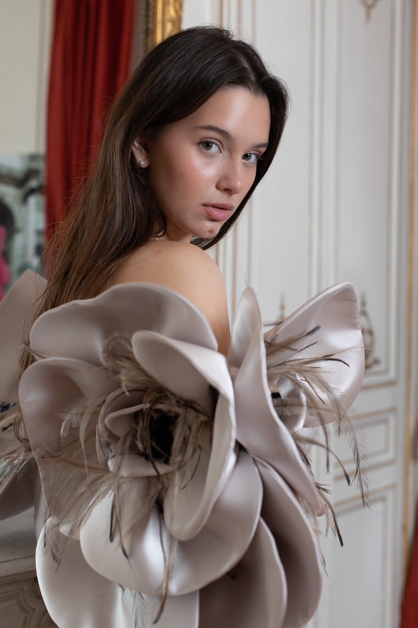 Armas beezides toonides 3D lilledega kleit, mis sobib koolilõpetajale, sünnipäevalisele ja teisteks kevadsuvisteks pidustusteks.